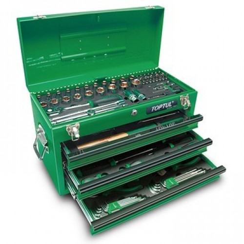 Кол-во единиц: 99 ед. Насадки TORX с отв. 1/4": T8-T40 ( L 37мм) Головка торцевая: 4-13 мм Удлинитель: 1/4" - 50, 100мм; 1/2" - 125, 250мм Вороток-отвертка : 150мм Вороток с плавающей головкой: 1/4"-115мм, 1/2"-250мм Трещотки 1/2", 1/4" (резиновая ручка): 36 зубцов Головка торцевая 1/2": 10-32 мм Свечная головка 1/2" магнитная: 16мм, 21мм Ключ комбинированный (Super Torque): 8-19 мм Плоскогубцы: 7"(chrome molybdenum) Плоскогубцы с удлиненными губками: 8" Плоскогубцы переставные: 10х240 мм (chrome molybdenum) Бокорезы: 7"(chrome molybdenum) Отвертки: PH2х25, PH0х60, PH1х80мм, PH2х100мм, SL6.5х25мм, 3.5х100мм, 4х100, 5.5х150мм, 6.5х150мм, 8х175мм, PH3х150мм Набор Г-обр.шестигр. супердл. с шаром 9ед: 1,5-10 мм Набор Г-обр. ключей TORX длинных 9ед: T10 - T50 Молоток: 300г Ящик (3 секции): 508x232x302(h) мм